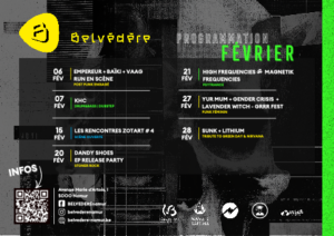 Pour ouvrir l’année, le Belvédère mettra particulièrement en avant la scène belge à travers une programmation éclectique, entre soirées psytrance, concerts engagés et projets portés par des artistes reconnus du pays, confirmant son soutien aux talents locaux sous toutes leurs