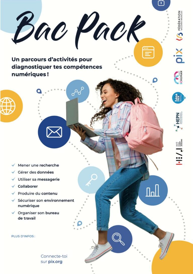 Le Parcours Pix a été créé par les conseillers et conseillères pédagogiques de la Haute École Albert Jacquard (HEAJ), de la Haute École de la Province de Namur (HEPN), de la Haute École Namur-Liège-Luxembourg (Hénallux) et de la Haute École Robert Schuman. Il s’agit d’un parcours libre, non obligatoire, qui t’aide à évaluer ton niveau numérique. Par exemple pour mener une recherche, gérer des données, sécuriser son environnement numérique, produire du contenu, collaborer, organiser son bureau de travail, …
