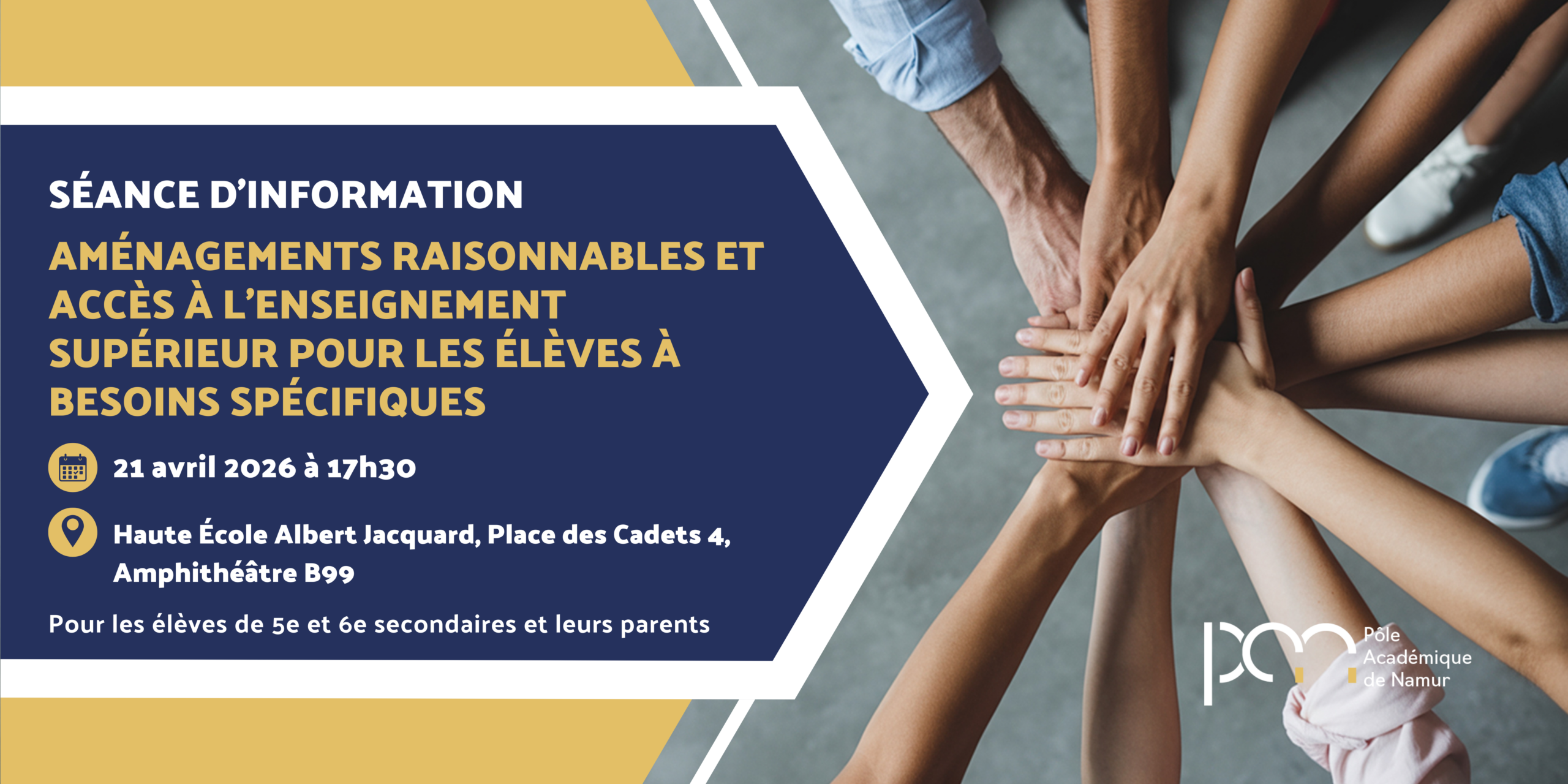 Haute École Albert Jacquard, Place des Cadets 4, Amphithéâtre B99Notre Chambre de l’Enseignement Supérieur Inclusif du Pôle académique de Namur organise une séance d’information dédiée à l’inclusion dans l’enseignement supérieur.Elle vise à informer les élèves de 5e et 6e […]